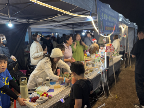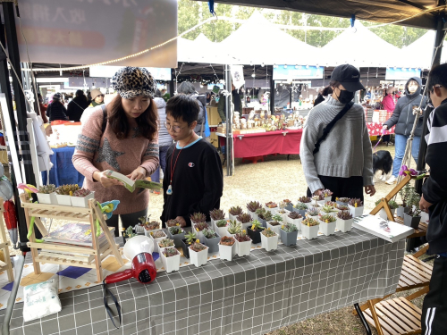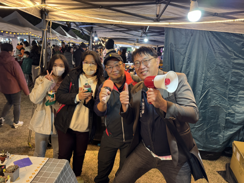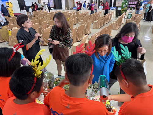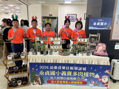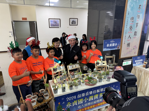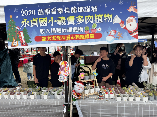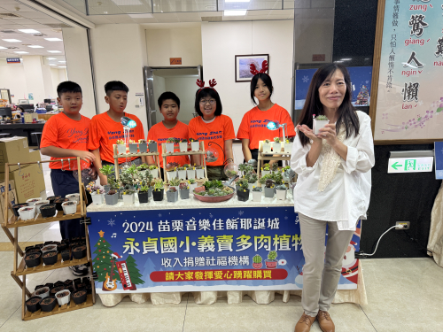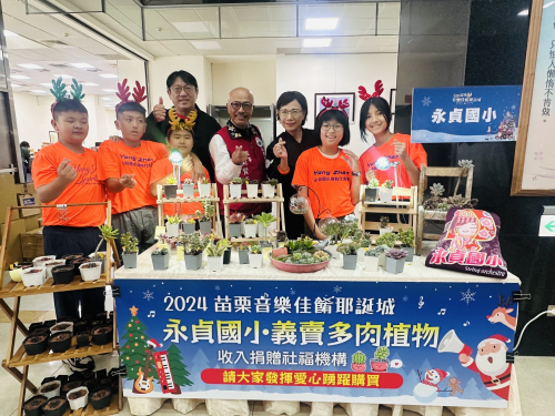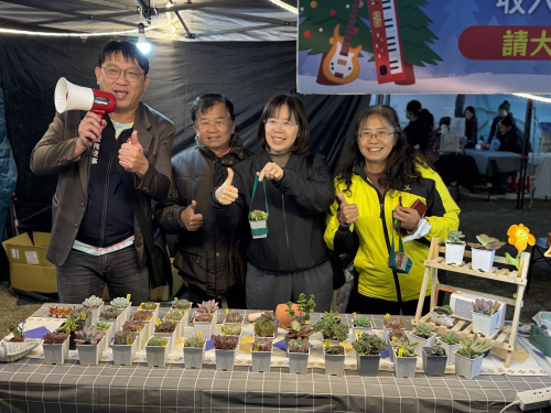 配合縣政府活動,結合多肉植物課程,參加苗栗縣音樂佳餚耶誕城活動記者會,並於系列的四日活動,義賣多肉植物發揮愛心,最後裝義賣所得捐給慈善機構