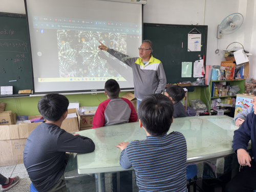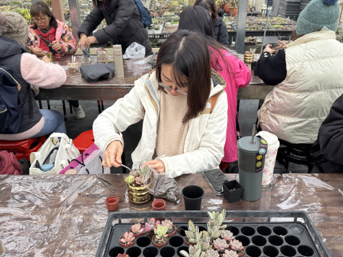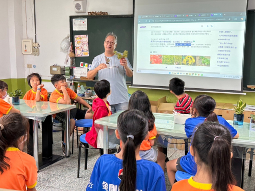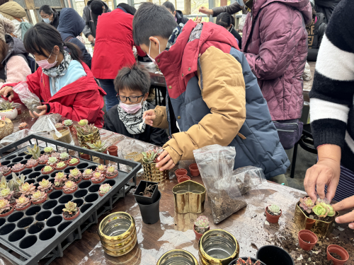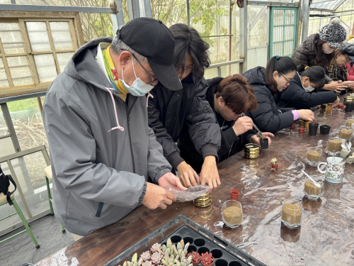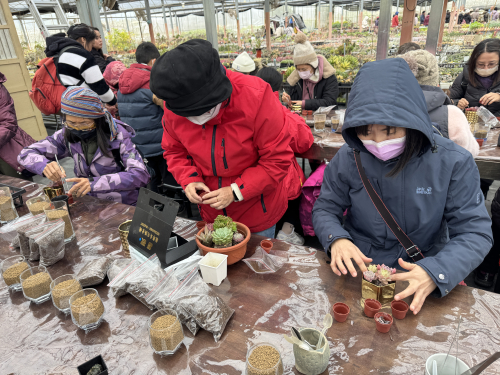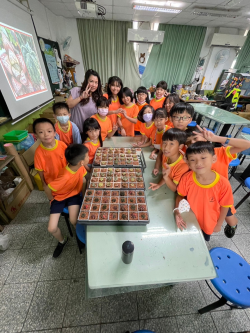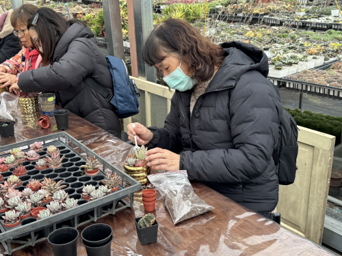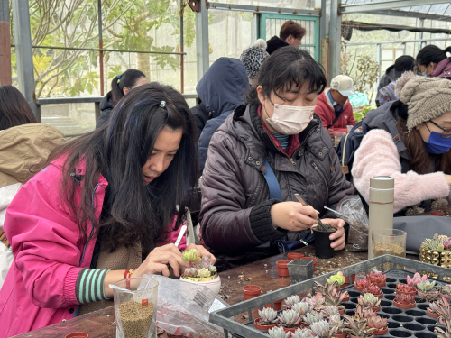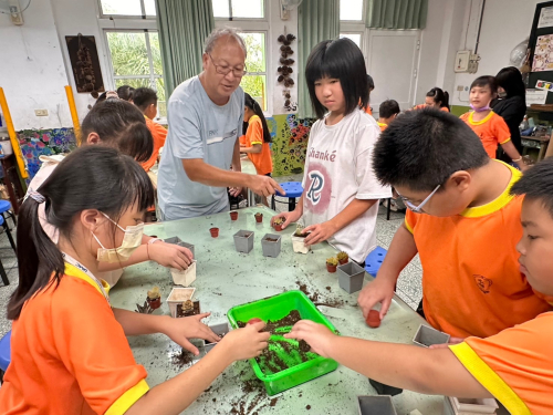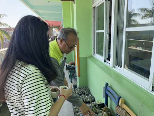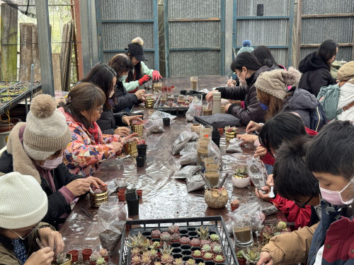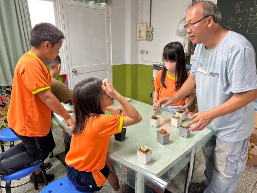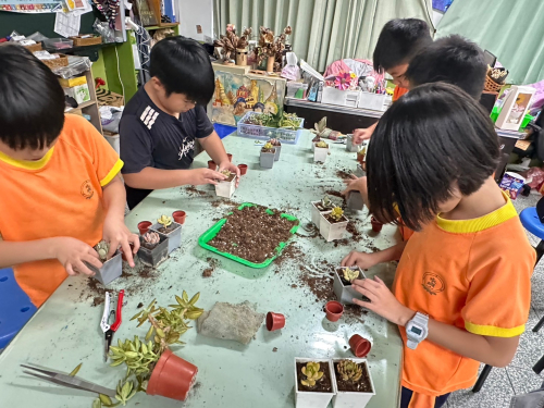 多肉植物課程,由卓蘭肉肉園藝徐嘉駿老師到校指導各年級學生上多肉種植、分枝及擺盆的課程。