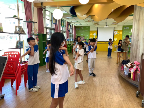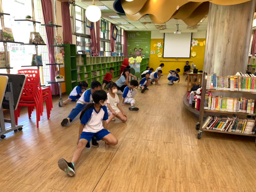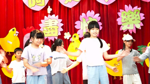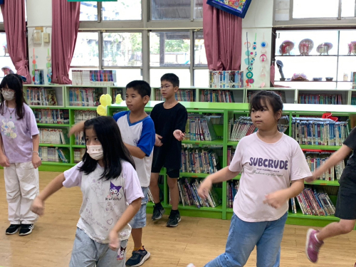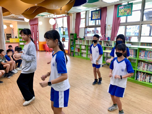 ,從三年級學習客家童謠唱跳開始,再搭配三至六年級的多元課程舞蹈教學,讓客家元素融入課程;另外搭配部定課程,讓三至六年級學生都能接觸客家童謠舞蹈。