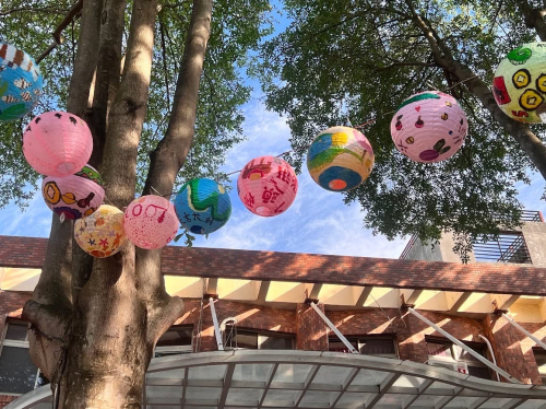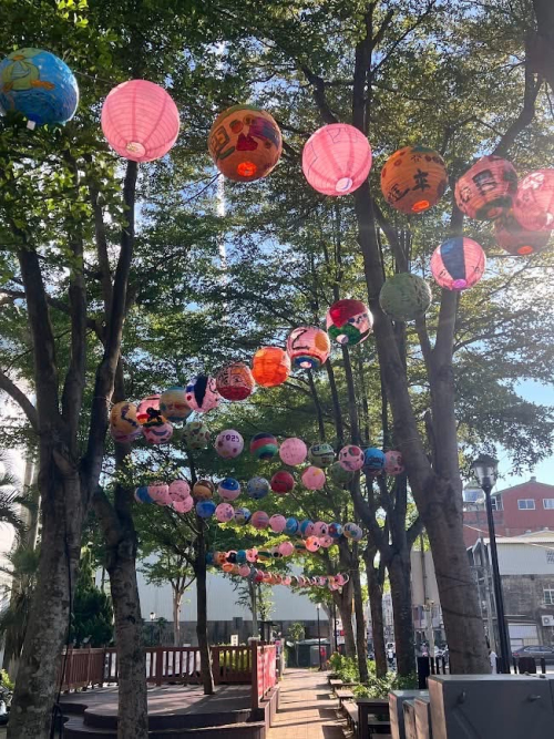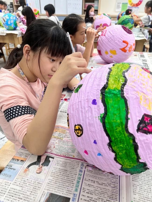 美術班學生參與四月八燈籠比賽,作品高掛頭份老街,成為最亮眼的文化風景。
