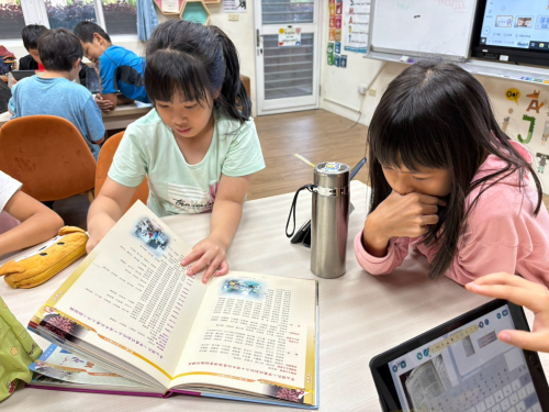 孩子們準備開始深入了解學校及社區過去的故事,在實際進入訪談、踏查之前,先參考相關的文獻、校刊、舊照片等資料,對於家鄉過去的故事有初步的認識。