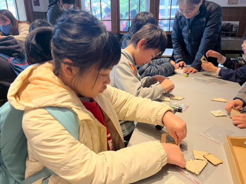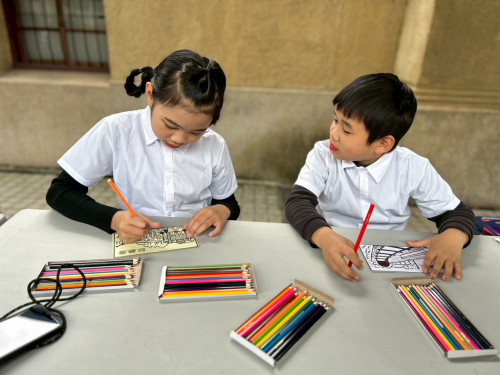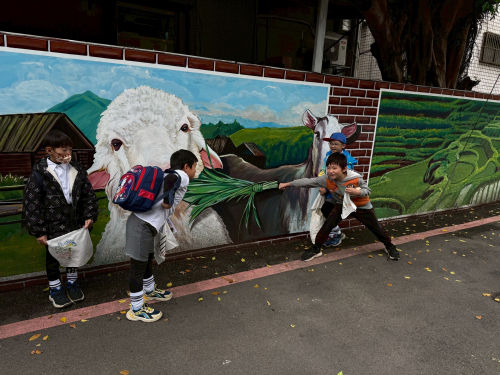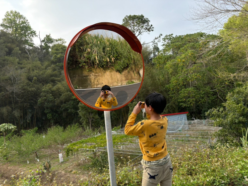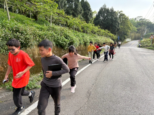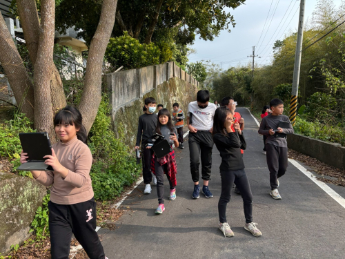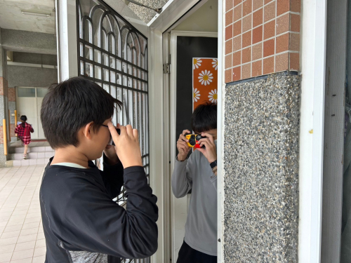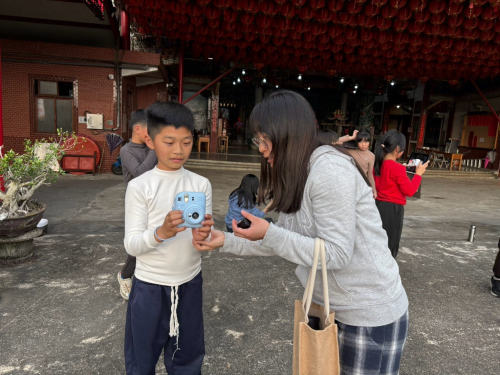 為了讓學生更加認識家鄉,孩子以緩慢的步伐踏查平時僅匆匆經過的景山社區,並特別選用底片相機,讓孩子透過更珍惜每一次快門的方式,記錄他們眼中珍貴的家鄉記憶。不同於以往家人接送上下學的快速移動,這次實地走讀讓孩子真正踏上熟悉又陌生的道路,看見社區生活的細節。踏查過程中,學生們走訪了景山的重要信仰中心「朝南宮」,也遇見了剛好經過的家長,留下了驚喜與笑聲。在相機裡,除了有街景與地標,也有孩子們彼此為對方拍下的身影,這些照片成為他們對家鄉回憶的收藏。