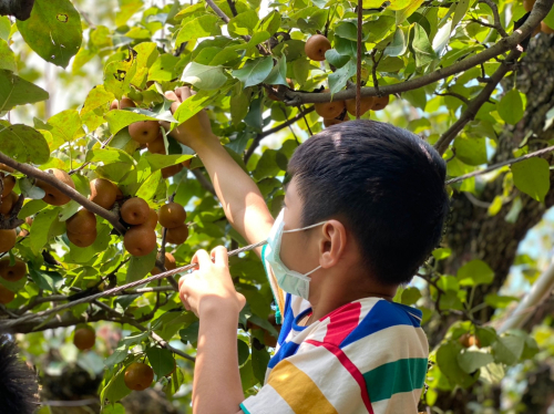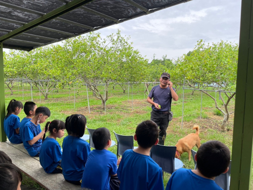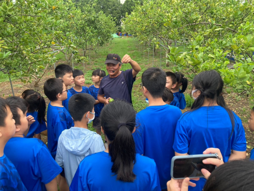 本次地方體驗課程,我們結合本校家長會會長的在地果園資源,設計了一場以「鳥梨」為主題的原生種認識活動。由於學生平時接觸較多的是經濟價值較高的新興梨與甘露梨,對於景山地區原生種——鳥梨的了解相對有限,因此藉由此次課程,希望讓孩子認識既古老又具文化意義的梨種,並與熟悉的品種進行比較。活動當天,會長親自帶領學生走入果園,介紹鳥梨作為台灣在地原生種的重要性,也帶學生實地觀察鳥梨的外觀與特色,從產地到加工的體驗,讓他們對這項在地果物留下深刻印象,更深化了對家鄉物產的認識與情感連結。