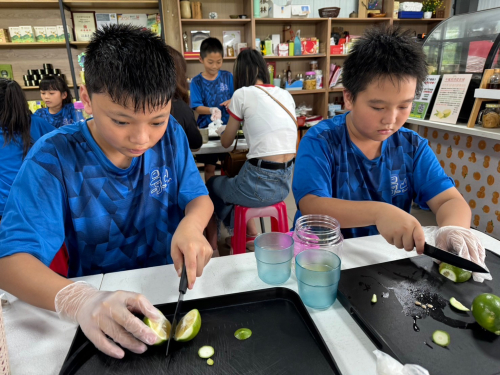 本次地方體驗課程,我們帶領學生走訪台中外埔的「檸檬森林」,讓孩子從自己的水梨故鄉景山出發,踏上另一片果園土地,認識不同作物的生命樣貌。活動中,學生親手體驗糖漬檸檬的製作過程,從清洗、新鮮切片到糖漬處理,每一步都小心翼翼。透過這次參訪,學生們將景山的水梨與外埔的檸檬進行對比,了解不同果樹的栽培方式與產業發展,也從農業體驗中認識更多元的在地風貌,培養對土地的關懷與尊重。