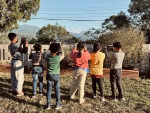 景山國小是一所坐落於卓蘭鎮山區的偏遠學校,旁有雪山山脈支稜(大克山及馬拉邦山)及大安溪支流景山溪圍繞,生態豐富多元,這樣的氣候環境也孕育出卓蘭水果之鄉的美名,景山國小社區以種梨及柑橘為主,每到農忙時,孩子便是一個得力的小幫手。土地是景山賴以為生的資產,學生與土地的連結非常密切,為讓這片土地能永續的提供人類的需求,健康的土地更顯重要。透過落葉、菜類廚餘、木屑、酵素及在地土壤,經6個月的發酵熟成,是景山孩子製作有機土的日常。為讓孩子對土地有更深一層的認識,透過12年國教的校訂課程,景山國小設計一套「永續智能育景山」的課程,從製作有機土開始,到用不同土壤栽種,以了解有機土壤與一般土壤對植物的影響、解決經營果園所遇到的困難(如水資源的再利用、種植水梨所產生的垃圾處理、梨枝創生、過剩水果的再利用、自動澆灌、智能趕獸器),讓孩子對生存在地球上的萬物相互關懷與尊重、感恩知足的去面對及反思,讓孩子能懷著對大自然感恩之心,生命就會充滿快樂與喜悅。