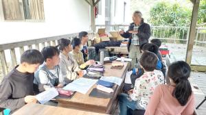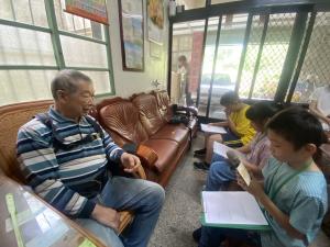 本次社區訪談、踏查課程與卓蘭在地果農「甘露梨之父:劉申權先生」合作,連結在地果園,進行教育及品種創新之在地踏查課程。本次課程安排之目的,是因孩子生長的景山地區,以種植柑橘及水梨維生,孩子從小到大耳濡目染,最其較為熟悉。然而對於水梨創新品種的研發過程、新型銷售方式的認識有限,希望透過這次的課程,可以讓學生對於水梨產業有不一樣層面的認識。當日劉申權爺爺接受孩子們的訪談,分享水梨產業的現況以及發展,也介紹了發明一個新品種需要付出的心血及時間,更實際帶著孩子們走入果園,然孩子們參觀他研發新品種的天然實驗室,最後還送孩子們每人一包「甘露梨果乾」讓孩子了解水梨不同的銷售模式。