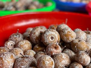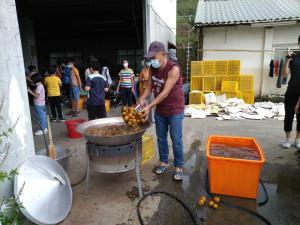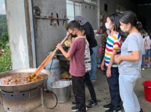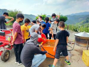 本校家長會會長帶著孩子走入果園認識在地原生種——鳥梨,鳥梨不僅僅是台灣在地原生種,更是高接梨嫁接的母樹,透過這次的體驗課程,會長教導孩子如何挑選光澤飽滿的鳥梨,並利用剪刀小心翼翼的剪下,再用清水洗淨他們身上的塵埃,接著將乾淨的鳥梨放進熱水中烹煮至半軟後,撈起並裹上晶瑩剔透的糖粉,最後放涼就製作完成!孩子們從中更加認識卓蘭景山在地原生種——鳥梨,以及它的製作方式!