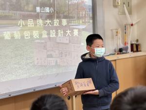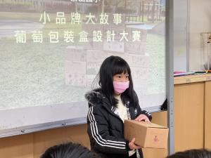 而本次課程主要是針對「理解卓蘭農業發展歷史」以及」「如何利用包裝及品牌設計說故事」為題,讓孩子能夠天馬行空的創造屬於自己的水果品牌,並搭配的自己所採收的葡萄,一起把自己的故事包裝進去。