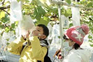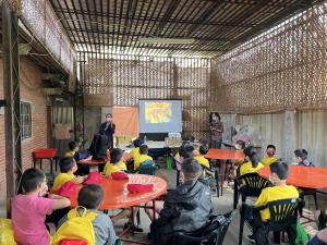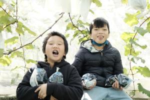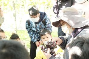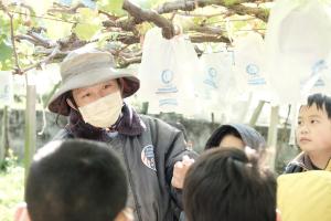 - 本次採果活動與卓蘭在地地方創生組織-「水果王國產業文化復興青年工作站」合作,並且連結在地小農,進行教育及生態串連之體驗課程。本次課程安排之目的,是因孩子生長的景山地區,以種植柑橘及水梨維生,孩子從小到大耳濡目染,最其較為熟悉。然而遠在卓蘭的東盛地區,以盛產巨風葡萄為名,而學生卻對其生長條件、營養、種植地形等不甚了解,因此希冀安排此次活動,讓學生對卓蘭地區的四大水果之一的葡萄,有更進一步的認識。
