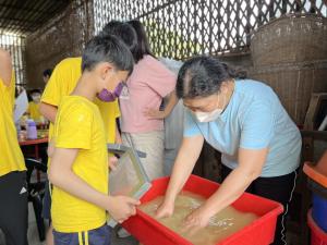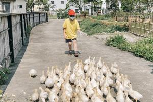 - 跨越一座山,來到了苑裡的鴨庄農場,這裡以維護生態環境,創造大小動物及植物最自然的棲息地為主,種植稻米,並輔以鴨子作為耕作之農夫,期待能藉由最無毒自然的方式,種植水稻。鴨子能捕食福壽螺,亦能將稻田根扎的更深,一舉兩得。本次辦理活動之目的,希冀孩子能更加理解在務農或種植任何作物時,能使用最自然無害的方式與這片土地共創最美的果實,並帶著這樣的觀念,能在自己的家鄉進行回饋及反思。