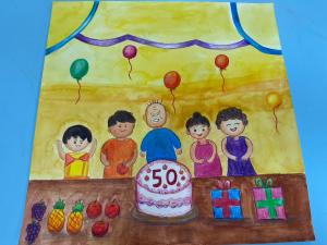 而後由教師及家長們合力將這些珍貴老照片,編寫出完整在地人生故事,再經專業美術老師指導孩子們共同創作出繪本。希望孩子跟社區民眾看了這本似曾相識的繪本後,能對「老」有新的啟發,人生由年輕到老,就是一段美好的旅程。各位看官們,看這些畫作能否試著編出一些故事呢?