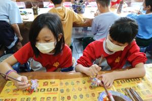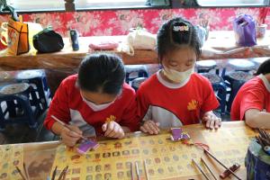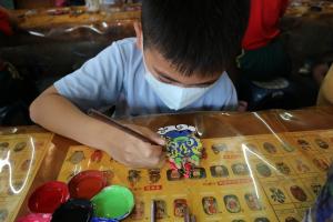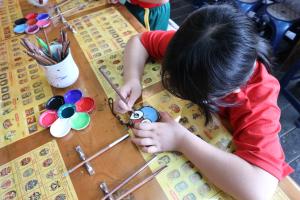 我們一行人乘坐大巴士抵達山板樵休閒農場後,就看到了大型的臉譜木雕,非常壯觀。工作人員熱情地迎接我們,並帶領我們到大廳進行彩繪臉譜DIY的活動。在這裡,我們可以選擇自己喜歡的臉譜木板,然後用複寫紙將臉譜的輪廓畫在木板上,再用顏料填色。工作人員還向我們介紹了臉譜的由來和意義,讓我們對這項傳統文化有了更深的認識。彩繪完成後,工作人員還幫忙上漆和乾燥,讓我們帶回一件獨一無二的紀念品。