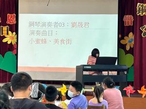 暑假期間,社區民中捐贈了一台中古琴,校內馮老師即興演奏了一首「克羅地亞狂想曲」,當時在操場上活動的孩子們全部被琴聲吸引紛紛圍過來,看著孩子們專注的眼神,相信「音樂能感動人心」這句話真的是無庸至疑的!因此經校內藝術與人文教學討論決定以「看九湖超英趕美」(英亦指音樂)為題作為本學期校本藝文課程發展重點。