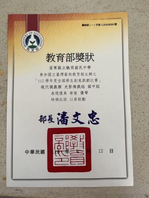本校偶戲課程是學校發展的特色之一。自102年度開辦以來屢獲佳績,迄今曾4次榮獲全國創意偶戲特優及多次優等;106年更以光影偶戲推動創意主題課程,獲教育部教學卓越金質獎殊榮,我們持續堅持地努力著,延續孩子對於戲劇與創造力的熱情。