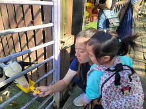 5.在餵食山羊時,學童能輕摸山羊,在人與動物間感情交流,有助其對待其他生命的尊重。