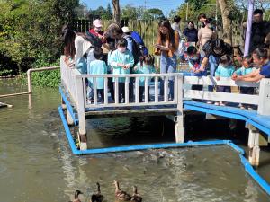 1. 配合本學期國語課本第十二課 彩色花田,走訪桃園市觀音區的向陽農場,認識五顏六色的植物。 2. 在參觀過程能遵守秩序,仔細聆聽導覽員的說明。3. 在大地遊戲區能遵從指令,進行團體遊戲,讓學童適應團體生活。 4. 在與植物、動物的互動中,培養尊重生命的觀念。